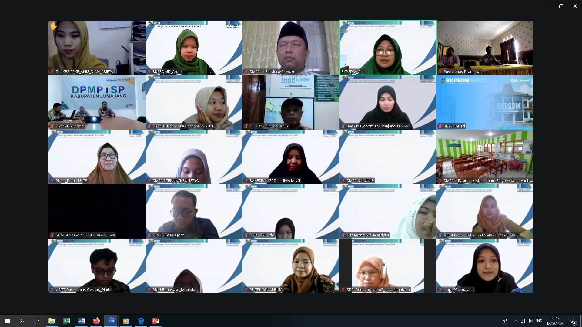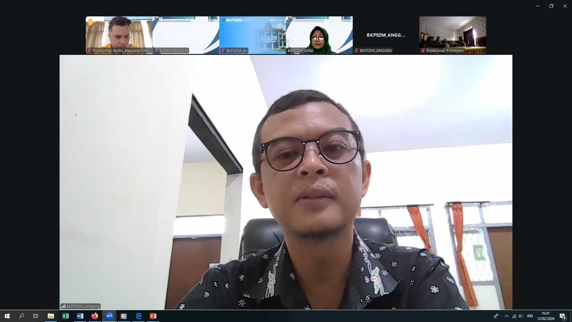 Badan Kepegawaian dan Pengembangan Sumber Daya Manusia Kabupaten Lumajang Bidang Penilaian Kinerja Aparatur dan Penghargaan mengadakan Kegiatan Bimbingan Teknis Penyusunan SKP Tahun 2026 Bagi ASN di Lingkungan Pemerintah Kabupaten Lumajang pada hari kamis, 12 Februari 2026, dimulai pukul 09.00 WIB sampai dengan pukul 12.00 WIB melalui Zoom Meeting, peserta bimbingan teknis pada hari ini adalah 1161 orang, terdiri dari pengelola kepegawaian OPD, admin kepegawaian Puskesmas, Kepala Sekolah dan operator sekolah TK, SD serta SMP Negeri, Pengawas Sekolah dan admin Korwil Dikbud di Lingkungan Pemerintah Kabupaten Lumajang.